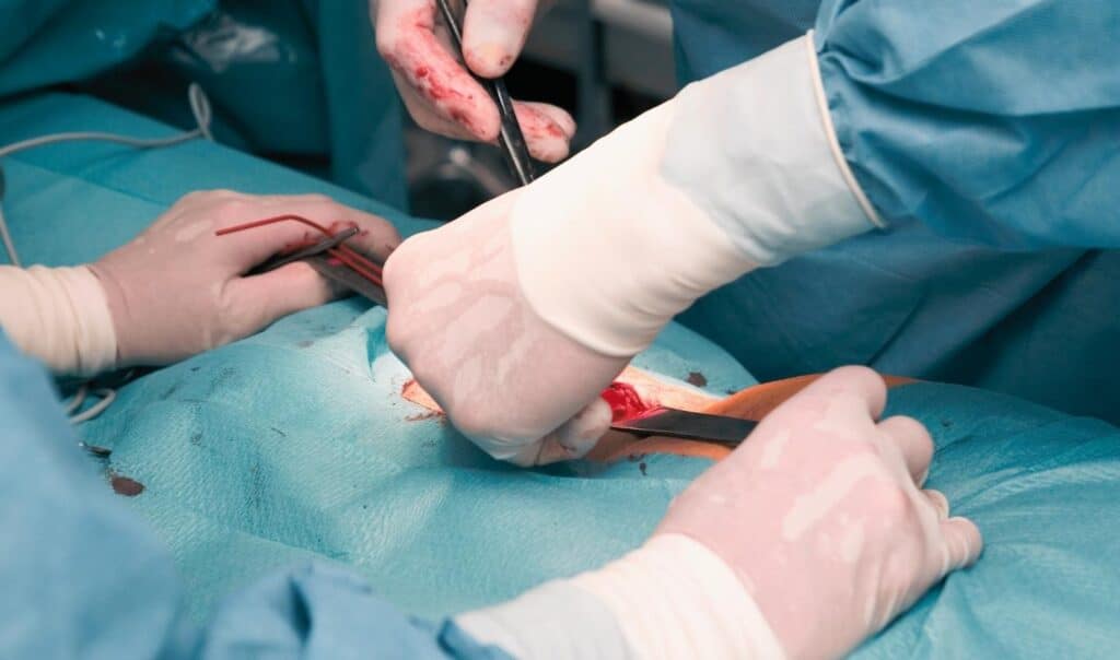 – Fallas en el cierre: Si los tejidos no se suturan adecuadamente o si hay tensión excesiva en la reparación, esto puede debilitar el área y facilitar la reaparición de la hernia.